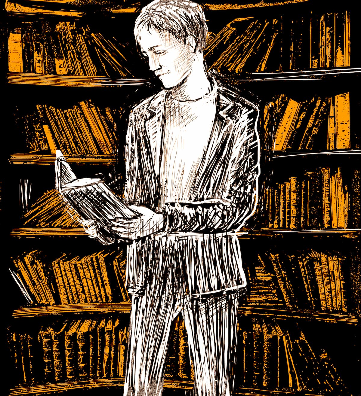 Entonces me recluyo en esta habitación atestada de libros que me rodean y que pienso describir con detalle. Tal vez si me ponga a contar que estoy en una biblioteca solo, los mismos libros de alrededor me sirvan en esto de crear un texto con significado, con trama, como un pulóver.
